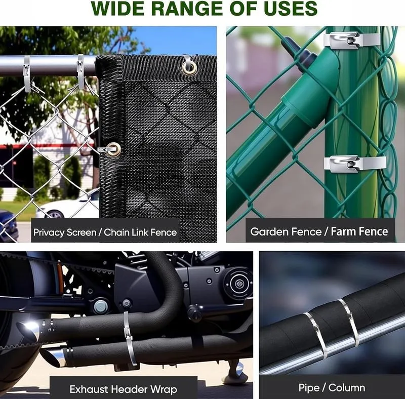 Chain link fence ties made from premium 304 stainless steel, these metal wire ties boast strength that is four times greater than traditional plastic alternatives. They resist heat, cold, rust, and corrosion, making them ideal for outdoor use. Unlike plastic ties, our heavy duty stainless steel zip ties won’t degrade under UV exposure, ensuring durability over time.